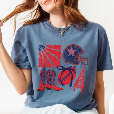 Football Flag Red and Blue - Womens Garment Dyed Tee
