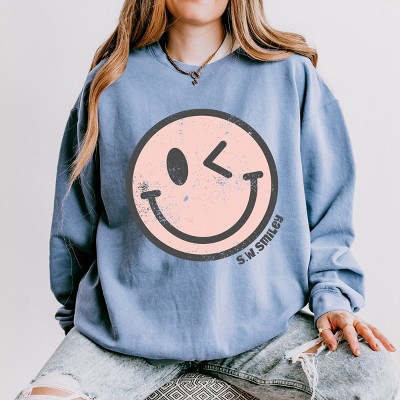 Simply Sage Market S.W.Smiley Pink Smiley Face Grunge Sweatshirt