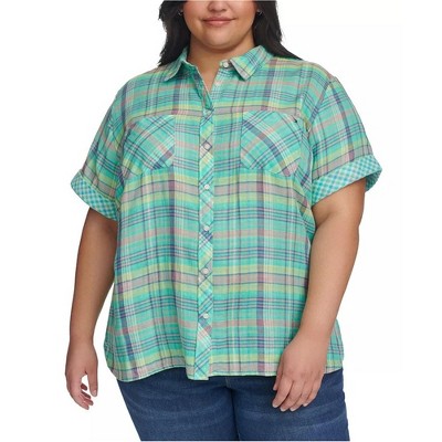 maison Jules Womens Buffalo Plaid Button Up Shirt