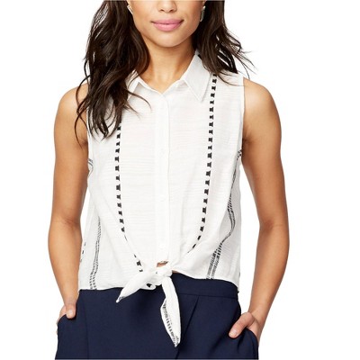 Finity Womens Tie Neck Button Up Shirt