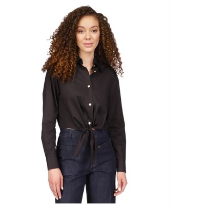 Michael Kors Womens Poplin Tie Front Button Up Shirt