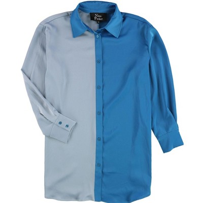 Nina Parker Womens Color Blocked Woven Button Up Shirt