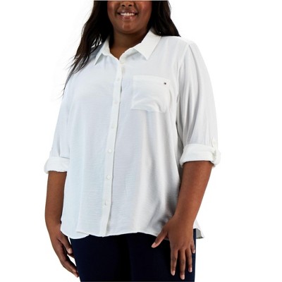 Tommy Hilfiger Womens Roll Tab Sleeve Button Up Shirt