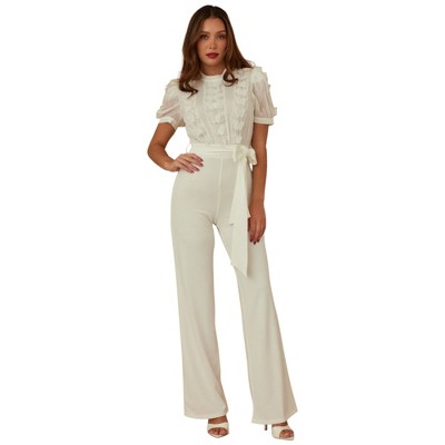 Seta T Women's Ruffle Cap Sleeve Belted High Waist Jumpsuits with Pockets