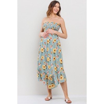 Hello Miz Maternity Floral Smocked Empire Waist Strapless Midi Dress