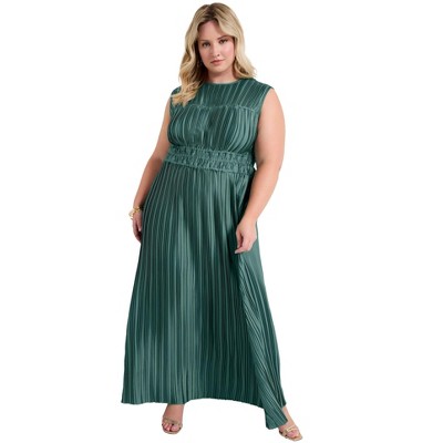 June + Vie by Roaman's Boatneck Plisse Cap-Sleeve Maxi Dress
