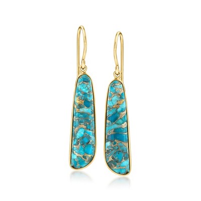 Ross-Simons Turquoise Cross Drop Earrings in 18kt Gold Over Sterling