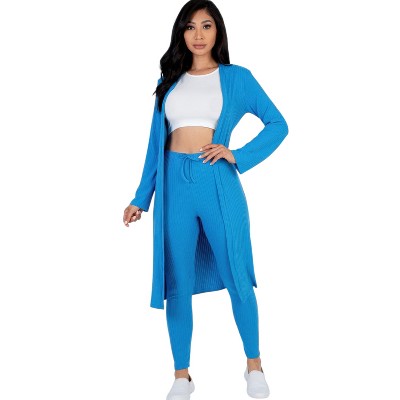 Slickblue Women's Ribbed Long Cardigan and Leggings Set, Matching Two-Piece Outfit, Cozy Casual Style, Multiple Colors, S-L