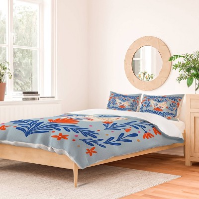 Striped Cotton Duvet Cover Set, 100 Washed Cotton Textured Percale Bedding, Set of 3, Denim Blue, Queen Size