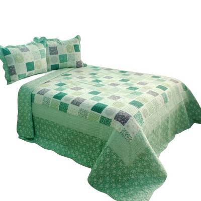 Slickblue 3PC Cotton Patchwork Quilt Set Full/Queen — Vermicelli Quilted, 4 Color Options, 2 Shams