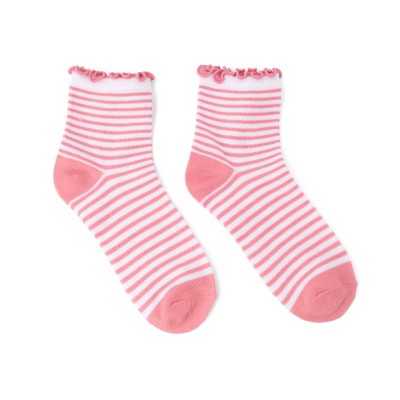 Memoi Women's Combed Cotton Ruffle Stripe Low Cut Shortie Socks