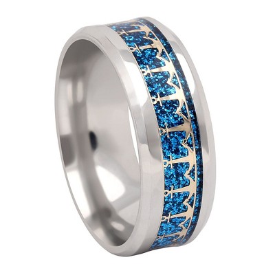 Ginger Lyne Love Blue Stainless Steel Wedding Band 8mm Ring for Men or Women