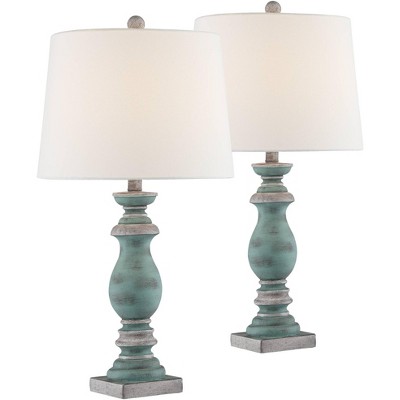 360 Lighting Ryan 28 1/2" Tall Modern Coastal End Table Lamps Set of 2 Ocean Blue Glass Off-White Shade Living Room Bedroom Bedside Nightstand House
