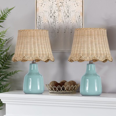 360 Lighting Nautical Accent Table Lamps 22.5" High Set of 2 Coastal Blue Green Rope Net Off White Drum Shade for Living Room Family Bedroom