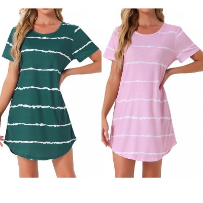 INSPIRE CHIC Women's 2 Pcs Round-Neck Curved-Hem Short-Sleeve Nightshirt Sleep Gown