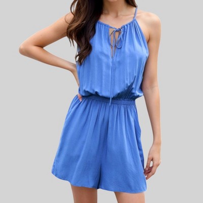 Anna-Kaci Women's Sleeveless Drawstring Neck Romper with Elastic Waistband for Casual Looks