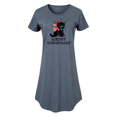 Women's - Instant Message - Christmas Vintage Meowy Christmas Kitty Graphic T-shirt Dress