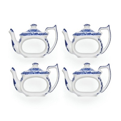 Spode Blue Italian Napkin Rings - Set of 4, Teapot Shaped Blue & White Table Accents for Dining Room Decor - Decorative Napkin Holders