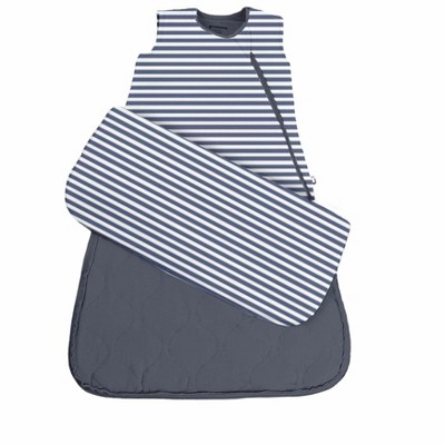 Bacati - Solid Navy Blue with Solid Border Blanket (Navy Blue/Grey Border)