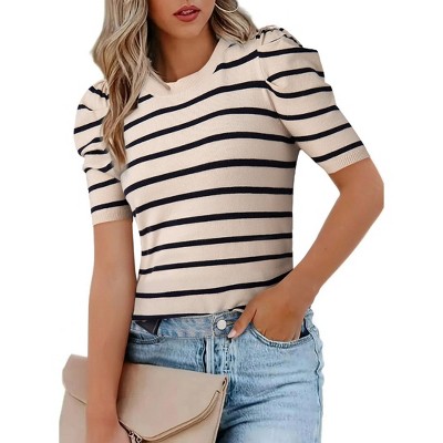 Zilpu Women's Trendy Puff Sleeve Knit Top - Casual Tee Shirt Blouse