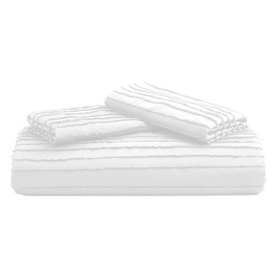 Peace Nest Microfiber Tufted Clipped Duvet Cover Set with Stripe Pattern