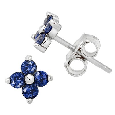 Sterling Silver Sapphire CZ Floral Stud Earrings