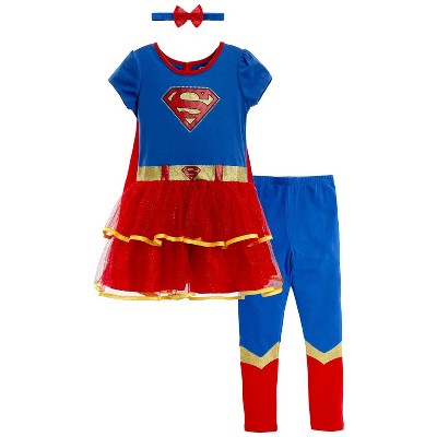 Warner Bros. Justice League Supergirl Girls Cosplay Costume Dress Leggings Cape and Headband 4 Piece Set Toddler