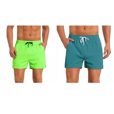 Lars Amadeus Men's Summer Beach Solid Color Mesh Lining Drawstring Waist Swim Shorts 2 Pack