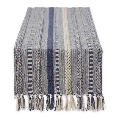 Design Imports Braided Stripe Jacquard Fringe Table Runner, 15X108", French Blue