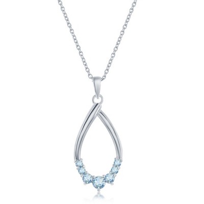 Simona Sterling Silver Pear-shaped Gemstone Necklace - Sky Blue Topaz - Blue - 16+2 Inch