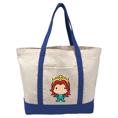 Justice League Movie Aquaman Logo Canvas Tote Bag With External Pocket, Reusable Shoulder Bag for Shopping, School, Beach, Royal