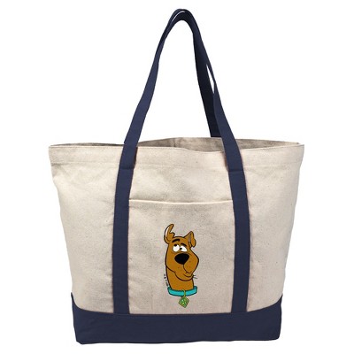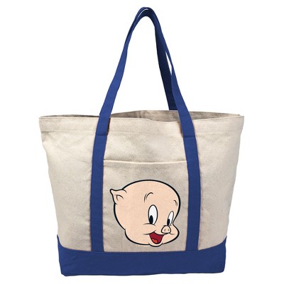 Looney Tunes Logo Canvas Tote Bag With External Pocket, Reusable Shoulder Bag for Shopping, School, Beach, Royal