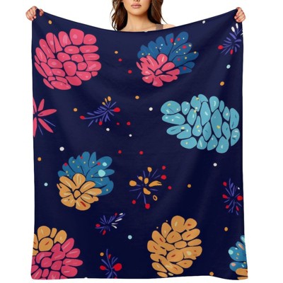 Soscooter Christmas Graffiti Blanket Dark Blue Colorful Floral Pattern Warm Sofa Bed Holiday Cozy Throw 60x80 inches