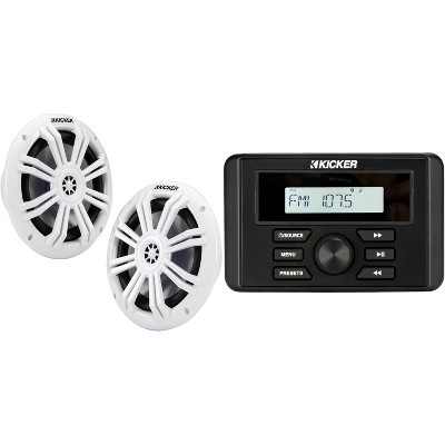 Kicker 46KMC3 Marine Gauge-Style Source & 49KM604W 6.5" White Marine Speakers bundle