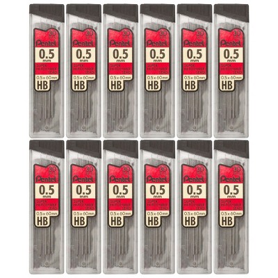 Pentel® HB Super Hi-Polymer Leads, 0.5mm, Black, 30 Per Pack, 12 Packs