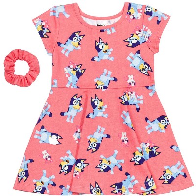 Toddler Girls' Bluey Floral Short Sleeve Tulle Dress - Pink