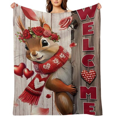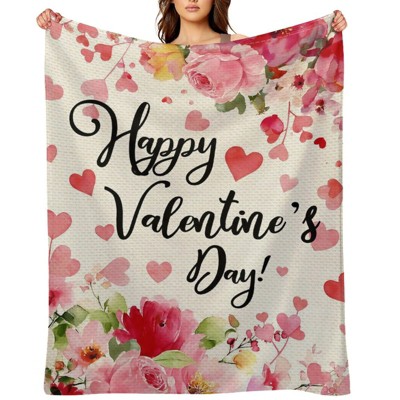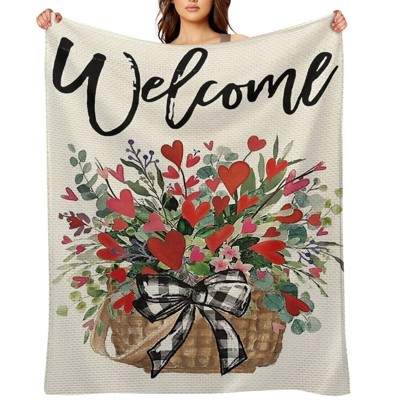 Valentine's Day Fleece Blanket Ultra Soft Anti-Pilling Floral Heart Bouquet Welcome Print for Couch Bed Camping 40x50 inches