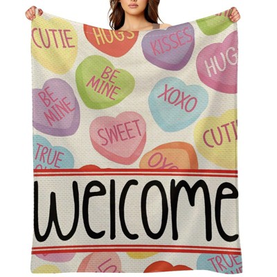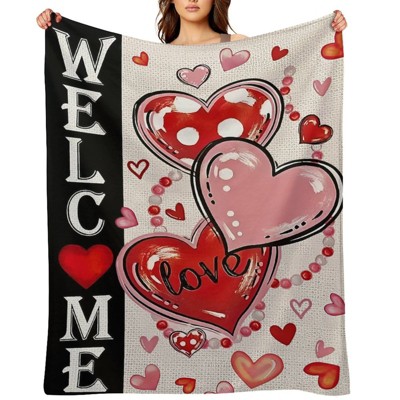 Valentine's Day Fleece Blanket Ultra Soft Anti-Pilling Graffiti Heart Love Welcome Print for Couch Bed Camping 30x40 inches