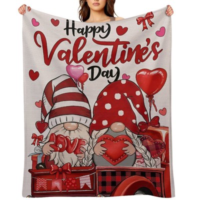 Valentine's Day Fleece Blanket Ultra Soft Anti-Pilling Gnome Truck Heart Print for Couch Bed Camping 40x50 inches