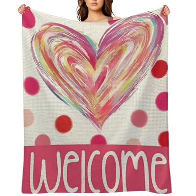 Valentine's Day Colorful Painted Heart Welcome Throw Blanket - Ultra Soft, Anti-Pilling for Couch & Travel 50x60 inches