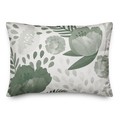 Distressed Floral Pattern Gray Cotton Throw Pillow Cover With Pillow Insert Set - Becky Cameron