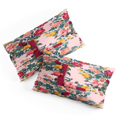 Valentina Ramos Harmonia Floral Pillow Sham (Standard) Red 1 pc - Deny Designs: Microfiber, Botanical Design, Machine Washable