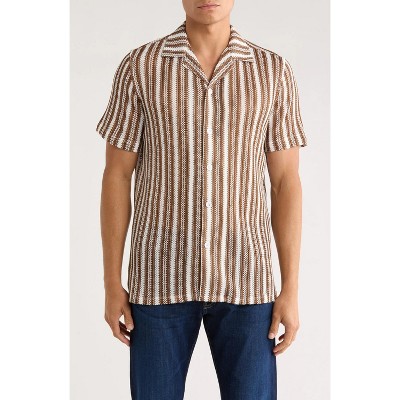 TR PREMIUM - TRSH-212 Textured Stripe Knit Short Sleeve Button-Up Shirt
