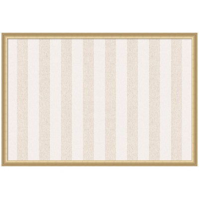 Kate and Laurel Framed Fabric Pinboard Wide Stripes Linen and White Wall Organization, 38x26, Florence Gold