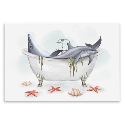 Stupell Industries Relaxing Dolphins Swimming Bathtub Nautical Starfish Wall Plaque Art, 15" x 10"
