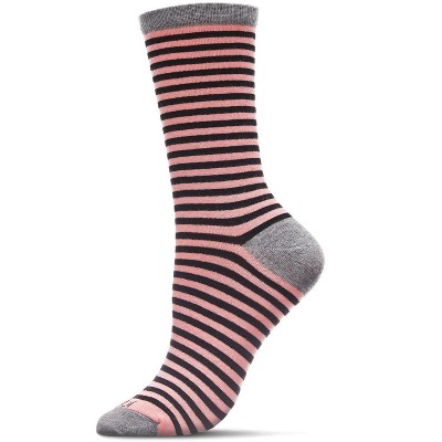Memoi Women's Ribbed Cotton Rich Striped Cuff Crew Sock