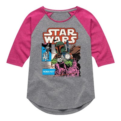 Girls' - Star Wars - Boba Fett Comic Cover Shirt Tail Raglan Graphic T-shirt