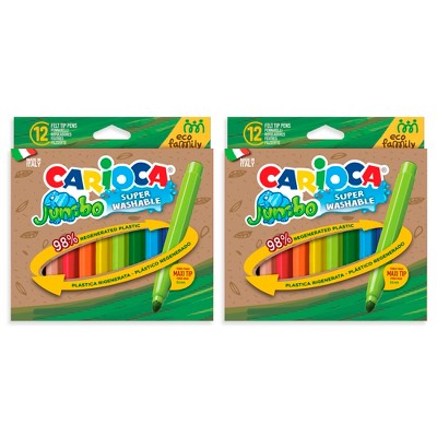 CARIOCA Eco Family Jumbo Maxi Tip Washable Felt Tip Pens, 12 Per Pack, 2 Packs