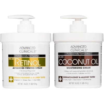 Advanced Clinicals Retinol Body Lotion & Coconut Oil Cream Set. Face & Body Creams for Moisturizing and Wrinkles. Two - 16 Oz.