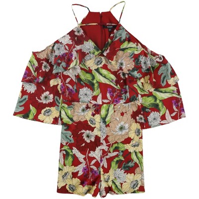 GUESS Womens Aurora Ruffle Floral Romper Jumpsuit